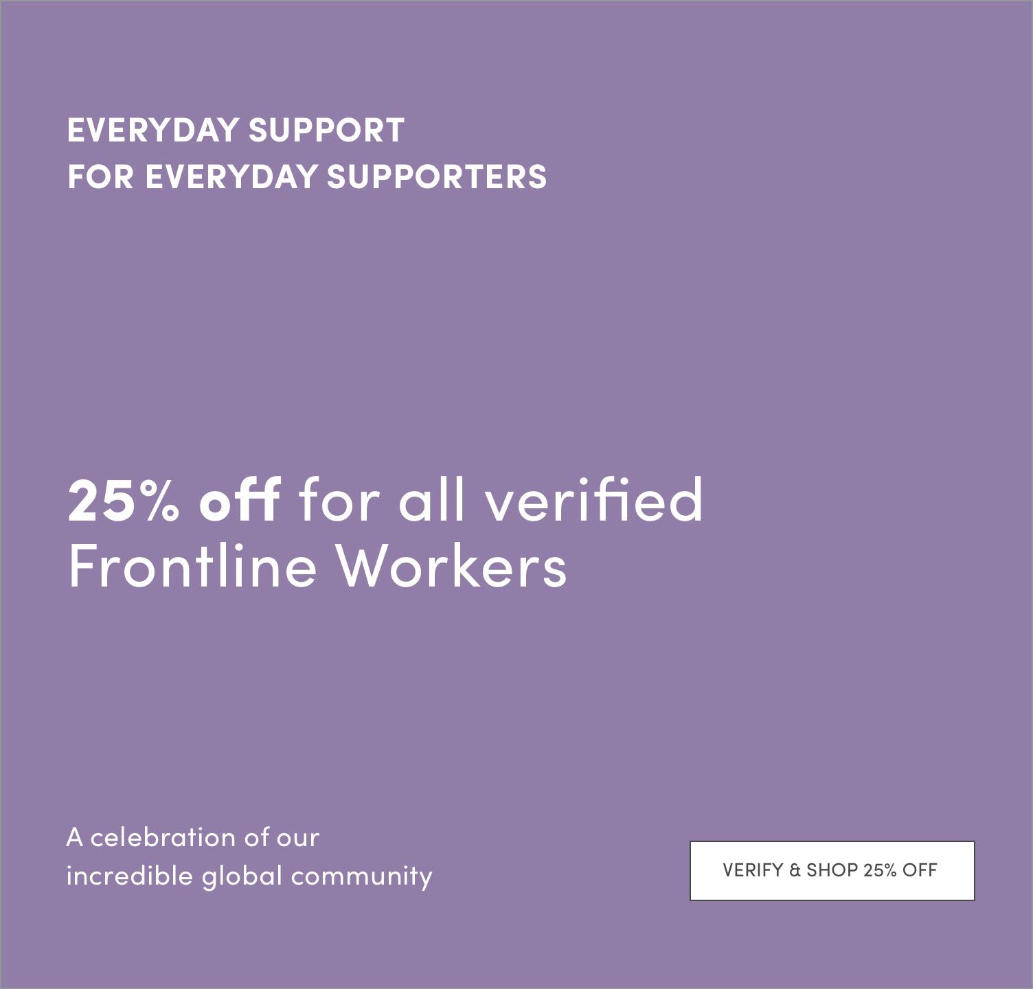 Our thanks to you - 25% off for all verified Frontline Workers.